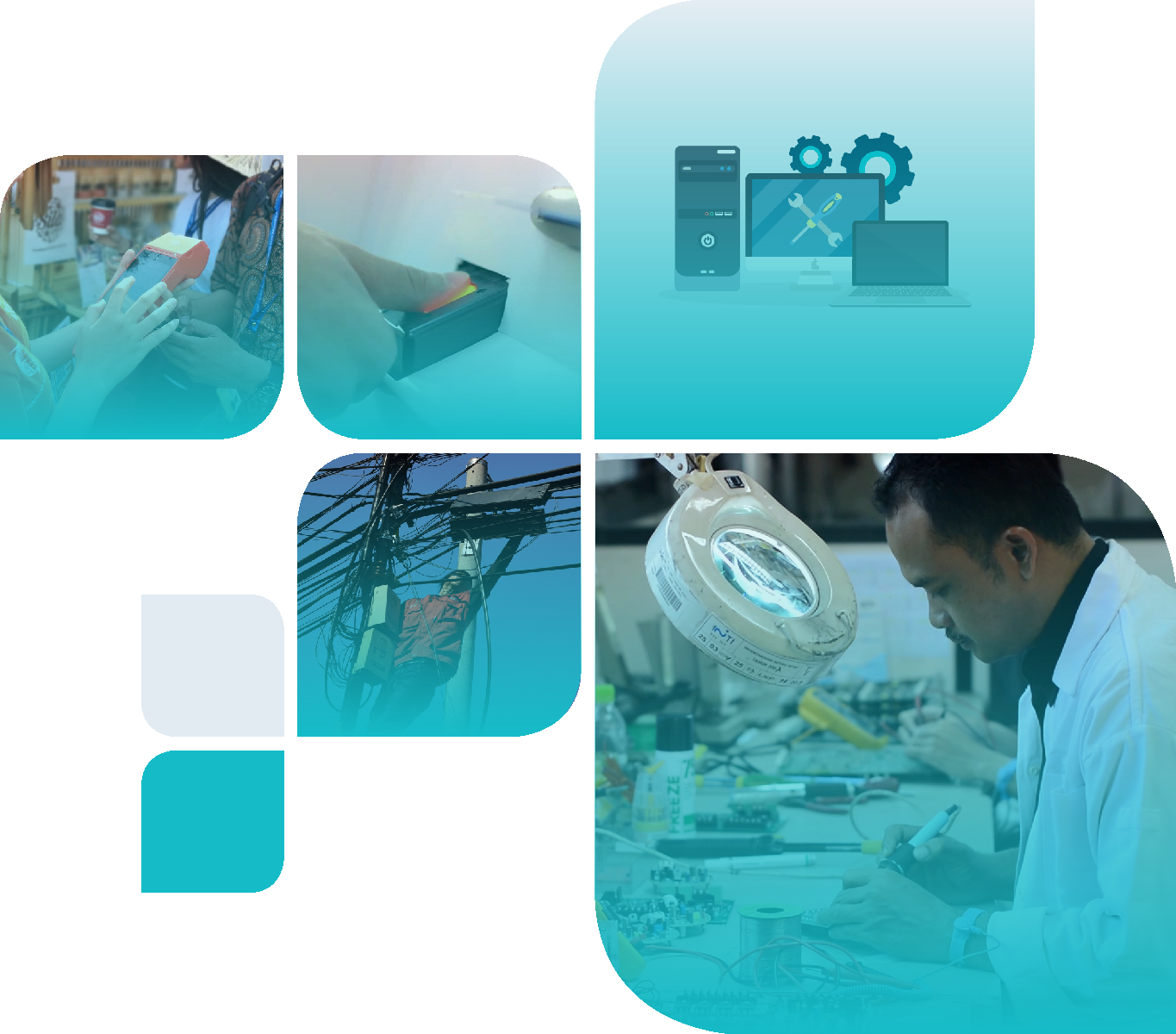 Solusi berupa desain dan engineering, pengadaan, implementasi dan manajemen proyek sampai uji terima proyek. Solusi dan layanan yang diberikan difokuskan untuk memenuhi kebutuhan dan keinginan pelanggan.